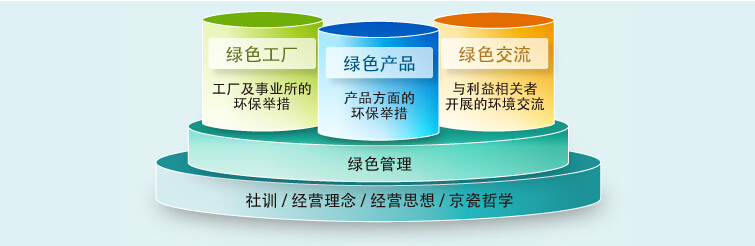 京瓷集團以全球環境管理體系“綠色管理”為基礎,在“綠色產品”、“綠色工廠”、“綠色交流”這三大領域,追求環保和經濟雙贏.同時,將共存(LIVING TOGETHER)作為所有企業活動的基礎,開展可持續發展的“環境經營”.