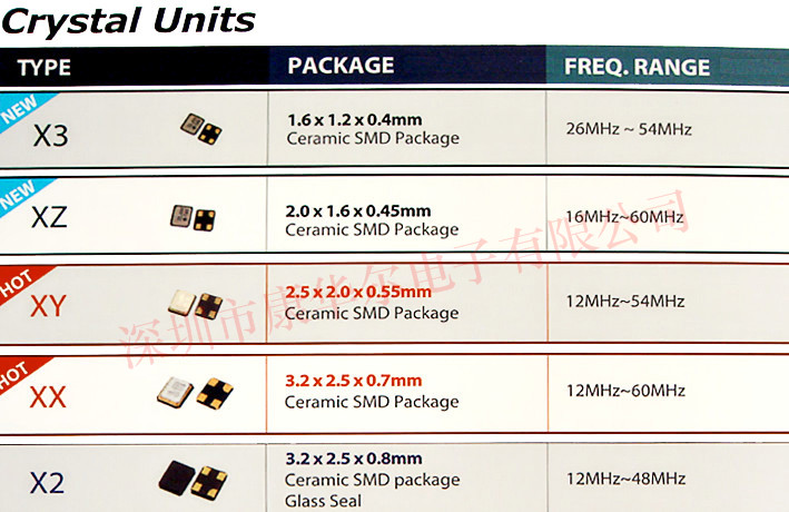| 晶振目錄表 | 泰藝石英晶體諧振器 XZ | ||||