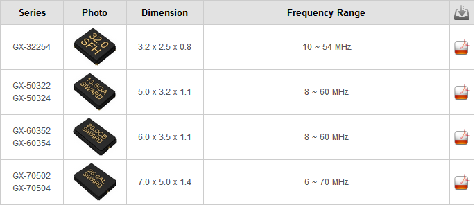| 晶振目錄 | 希華晶振型號GX-50322 GX-50324 | |
