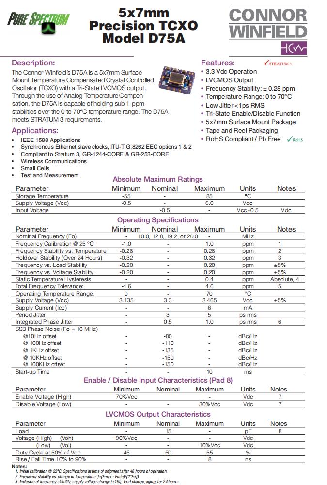 D75A-019.2M|TCXO石英晶體振蕩器|6G以太網(wǎng)晶振,美國ConnorWinfield晶振,D75A