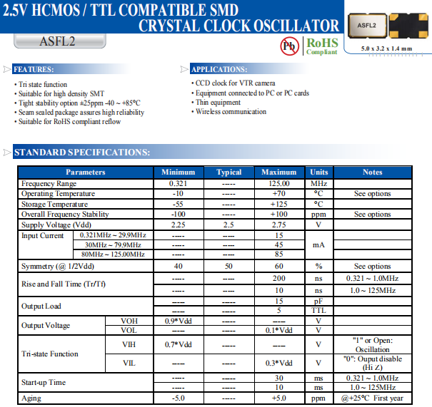 | 輸出頻率范圍 | fo | 0.321~125.000MHz |