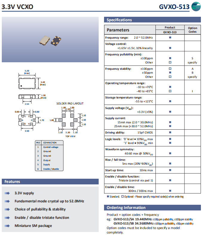 Golledge晶振,GVXO-513晶振,VCXO晶體振蕩器.貼片式石英晶體振蕩器,低電壓啟動功率,并且有多種電壓供選擇,比如有1.8V,2.5V,3.3V,3.8V,5V等,產品被廣泛應用于,平板筆記本,衛星系統,光纖通道,千兆以太網,串行ATA,串行連接SCSI,PCI-EXPress的SDH / SONET發射基站等領域.符合RoHS/無鉛.