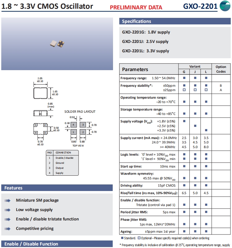 Golledge晶振,GXO-2201晶振,有源晶體振蕩器.智能手機晶振,產品具有高精度超小型的表面貼片型石英晶體振蕩器,最適用于移動通信終端的基準時鐘等移動通信領域.比如智能手機,無線通信,衛星導航,平臺基站等較高端的數碼產品,晶振本身小型,薄型具備各類移動通信的基準時鐘源用頻率,貼片晶振具有優良的電氣特性,耐環境性能適用于移動通信領域,滿足無鉛焊接的高溫回流溫度曲線要求.