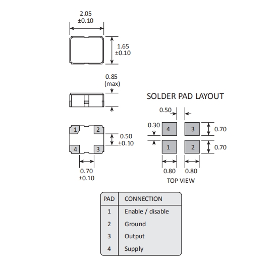 建議將輸出負載安裝在盡可能靠近石英振蕩器的地方(在20mm范圍之間).
