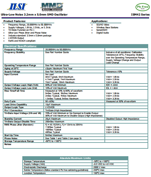 ILSI晶振,ISM42晶振,耐高溫晶振.5032mm體積的石英晶體振蕩器,有源晶振,該產品可驅動2.5V的溫補晶振,壓控晶振,VC-TCXO晶體振蕩器產品,電源電壓的低電耗型,編帶包裝方式,可對應自動高速貼片機自動焊接,及IR回流焊接(無鉛對應),為無鉛產品,超小型,質地輕.產品被廣泛應用到集成電路,程控交換系統,無線發(fā)射基站.