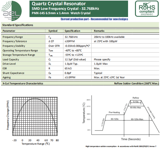 | AEL晶振 | 單位 | PMX-145晶振 | 石英晶振基本條件 |