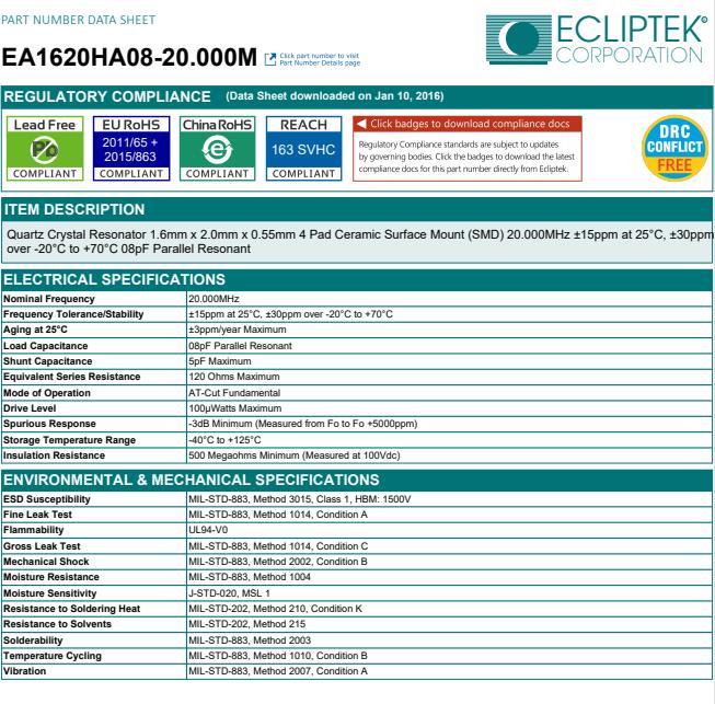 | Nominal Frequency | 20.000MHz |