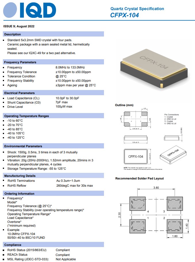 LFXTAL033075REEL,CFPX-104,5032mm,IQD無(wú)源晶體,醫(yī)療設(shè)備晶振,參數(shù)表