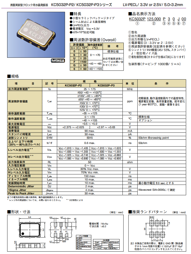 | KC5032A125.000C10E00 | AVX Corp/Kyocera Corp | KC5032A-C1, Kyocera | 125MHz | 1.6 V ~ 3.63 V | -10°C ~ 70°C |