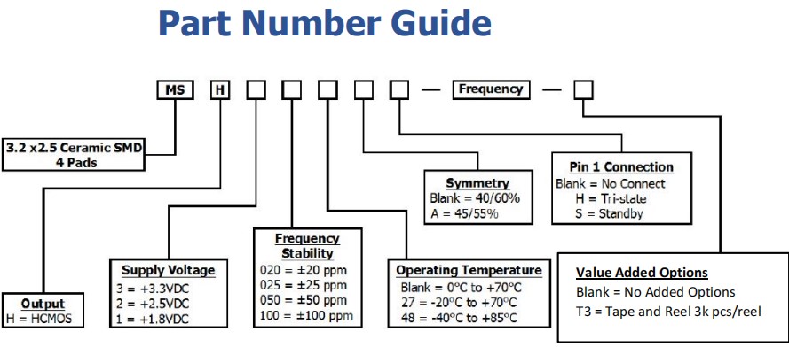 MSH302548AH-25.000MHZ-T,Mmdcomp有源晶振,3225mm晶振,導航儀晶振,參數表