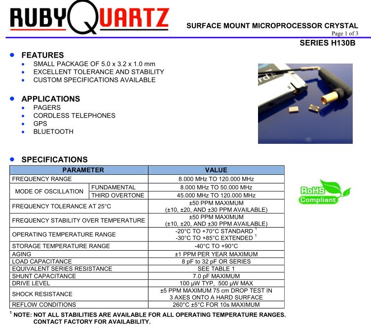 | DRIVE LEVEL | 100 µW TYP, 500 µW MAX | |