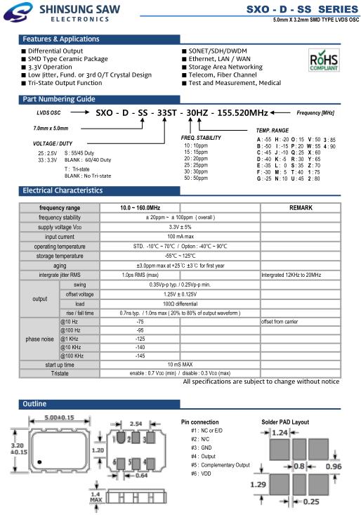 韓國新松晶振,SXO-D-SS有源晶體振蕩器,SXO-D-SS-33ST-30HZ-20.000MHz晶振,5032mm體積的石英晶體振蕩器,有源晶振,該產品可驅動2.5V的溫補晶振,壓控晶振,VC-TCXO晶體振蕩器產品,電源電壓的低電耗型,編帶包裝方式,可對應自動高速貼片機自動焊接,及IR回流焊接(無鉛對應),為無鉛產品,超小型,質地輕.產品被廣泛應用到集成電路,程控交換系統,無線發射基站.