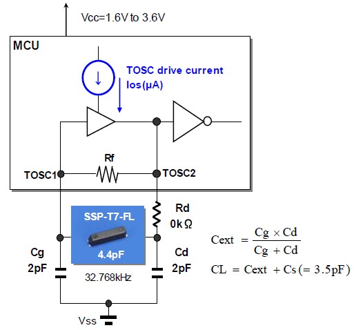 各種邏輯芯片的晶振引腳可以等效為電容三點式振蕩器. 晶振引腳的內部通常是一個反相器, 或者是奇數個反相器串聯. 在晶振輸出引腳 XO 和晶振輸入引腳 XI 之間用一個電阻連接, 對于 CMOS 芯片通常是數 M 到數十 M 歐之間. 很多芯片的引腳內部已經包含了這個電阻, 引腳外部就不用接了. 這個電阻是為了使反相器在振蕩初始時處與線性狀態, 反相器就如同一個有很大增益的放大器, 以便于起振. 石英晶體也連接在晶振引腳的輸入和輸出之間, 等效為一個并聯諧振回路, 振蕩頻率應該是石英晶體的并聯諧振頻率. 晶體旁邊的兩個電容接地, 實際上就是電容三點式電路的分壓電容, 接地點就是分壓點. 以接地點即分壓點為參考點, 振蕩引腳的輸入和輸出是反相的, 但從并聯諧振回路即石英晶體兩端來看, 形成一個正反饋以保證電路持續振蕩. 在芯片設計時, 這兩個電容就已經形成了, 一般是兩個的容量相等, 容量大小依工藝和版圖而不同, 但終歸是比較小, 不一定適合很寬的頻率范圍. 外接時大約是數 PF 到數十 PF, 依頻率和石英晶體的特性而定. 需要注意的是: 這兩個電容串聯的值是并聯在諧振回路上的, 會影響振蕩頻率. 當兩個電容量相等時, 反饋系數是 0.5, 一般是可以滿足振蕩條件的, 但如果不易起振或振蕩不穩定可以減小輸入端對地電容量, 而增加輸出端的值以提高反饋量, 一般芯片的 Data sheet 上會有說明 ,時鐘晶體表晶,32.768K系列,現在國外設計開發都以小負載電容為主了,因為小負載電容,可以減少電流電壓的流量,表晶線路使用小負載電容也可以使電池使命延長,可以參考康華爾電子官方網站技術資料下載低電容匹配技術。