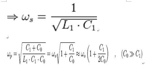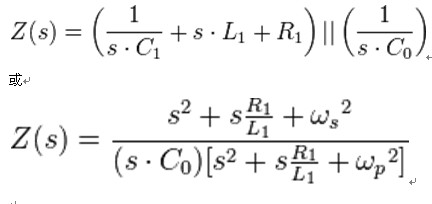 其中 s 是複數頻率 4 , 是串聯共振頻率, 是並聯共振頻率,以上頻率單位都是弧/每秒。