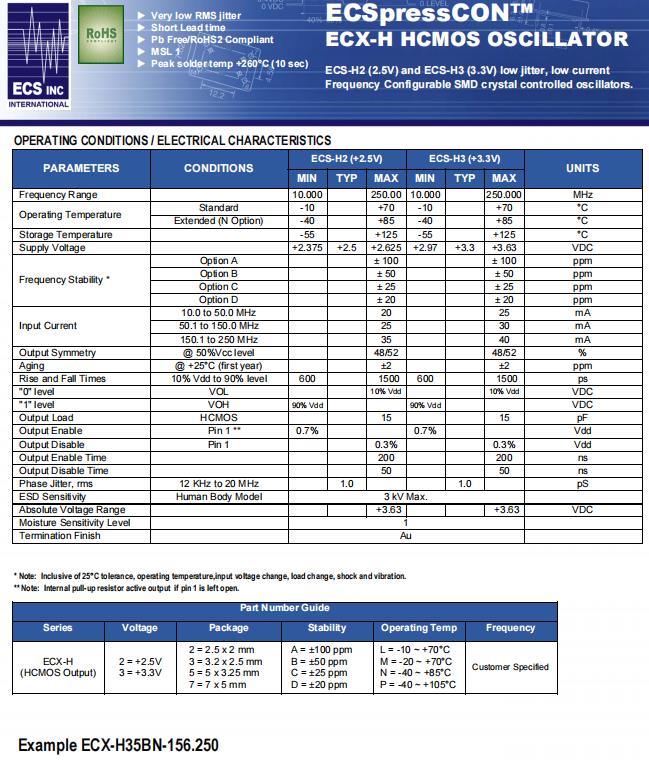 | ECX-H27BN-250.000 | ECS振蕩器 | ECSpressCON™ ECX-H | 250MHz | -40°C ~ 85°C |