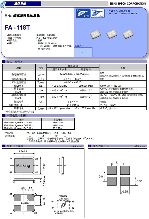 FA-118T貼片晶振X1E000251006800適用于可穿戴設(shè)備應(yīng)用,X1E000251006500,無(wú)源晶振