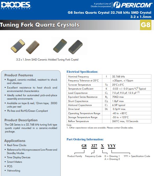 | G83270023 | Diodes晶振 | SaRonix-eCera™ G8 | 32.768kHz | - |