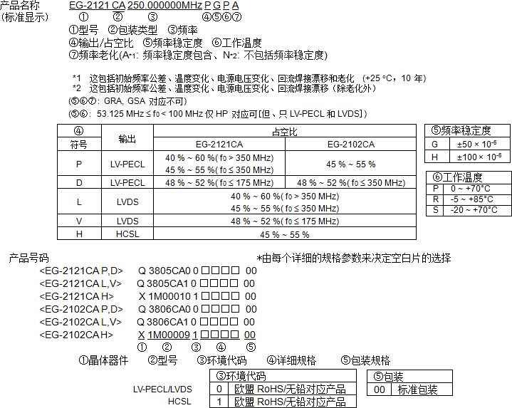 EG-2102CA愛普生差分#貼片晶振#7050mm, LV-PECL-LVDS-HCSL 低電平,低功耗,低電流電壓可達到, 電壓2.5V-3.3V