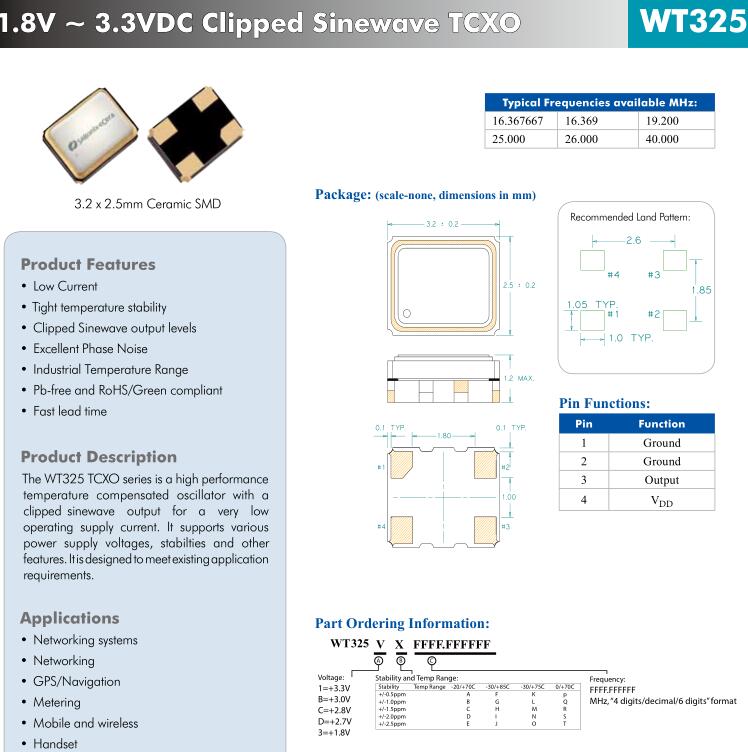 更多>>具備高性能和剪切正弦波輸出的環(huán)保TCXO振蕩器WT325CF0026.000000,專用于導航應用,ECERA品牌
