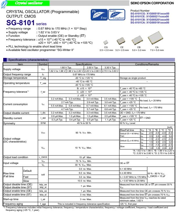 SG-8101CA | 32.507937 MHz | 7.00 x 5.00 x 1.40 mm | CMOS | 1.620 to 3.630 V | -40 to 85 °C |
