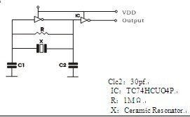 根據引出腳方式可分為SMD諧振器與直DIP諧振器,應用頻率可以分為低頻千赫系列,中頻和高頻諧振器兆赫系列。陶瓷諧振器需要與各種IC相配應用,常用IC有:4069UBE,TC74HCUO4P