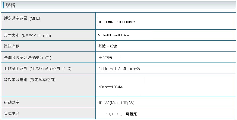 晶振規格參數