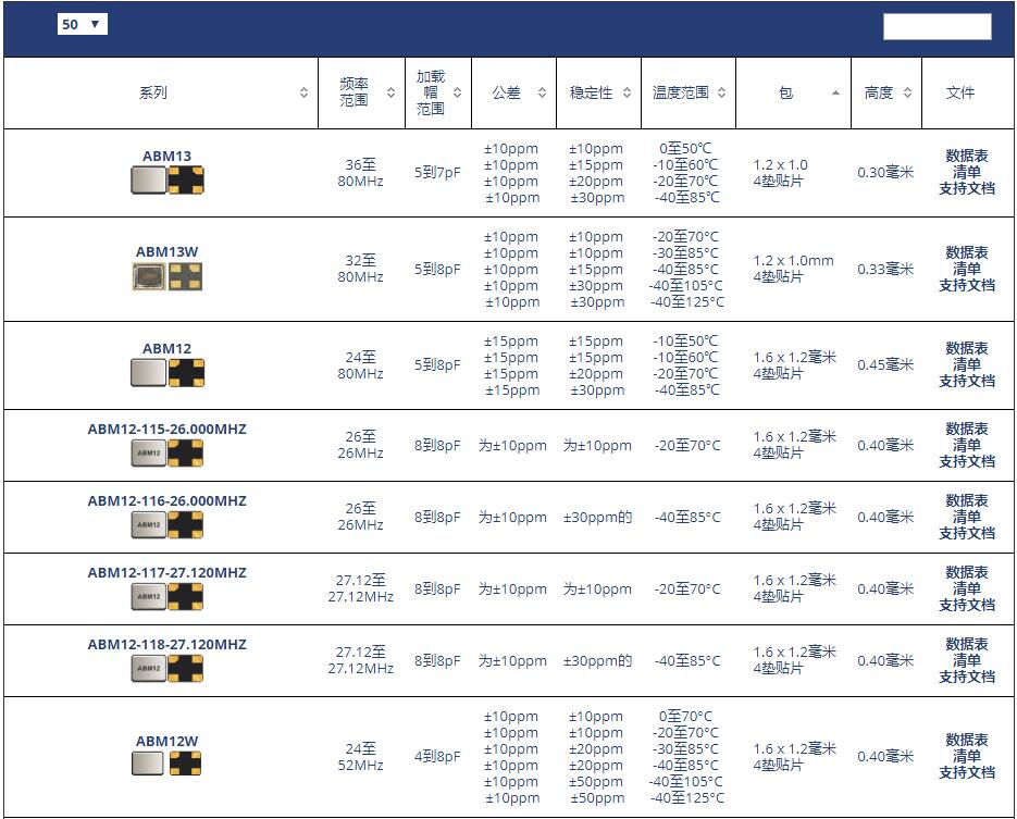 ABM3B晶振系列原廠代碼表: