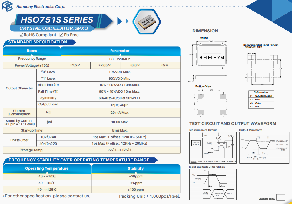 SSR020000K3CHE-T晶振,HELE高精度有源晶體,航空航天晶振,特點:微型超薄SMD產品尺寸(7.0×5.0×0.55 max)。高精度、可靠性高,耐熱性好的有源晶振。針對射頻應用、無線模塊設備、RFID應用和其他基于消費者的產品的優化解決方案。臺灣加高晶振公司,HELE晶振,小尺寸晶振,7050晶振,有源晶振,超小型晶振,低損耗晶振,高品質晶振,高精度晶振,程控交換機晶振,無人機晶振,北斗衛星定位模塊晶振,高精度晶振,6G室外基站晶振,電腦主板晶振,臺產晶振。