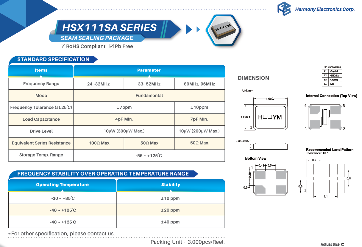 | X2C016000B81H-R | 加高晶振 | HSX211S | 16 MHz | ±10ppm | 8pF |
