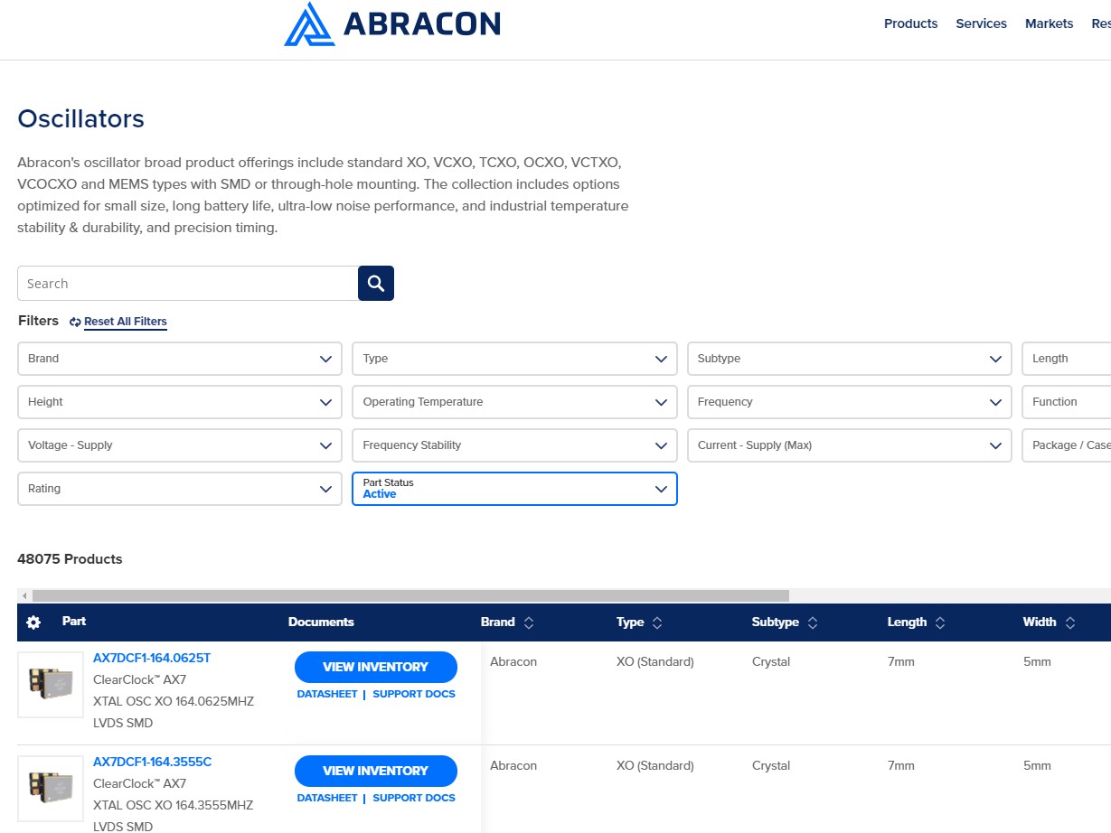 Since the tool’s inception in 2014, Abracon has made significant improvements to include a comprehensive selection-set for existing Abracon oscillators based on logic type, frequency, and supply voltage. In addition, both calculated rms jitter in femto seconds/pico seconds and calculated rms noise in radians are provided to assist engineers to determine the feasibility of the selected oscillator in their design.